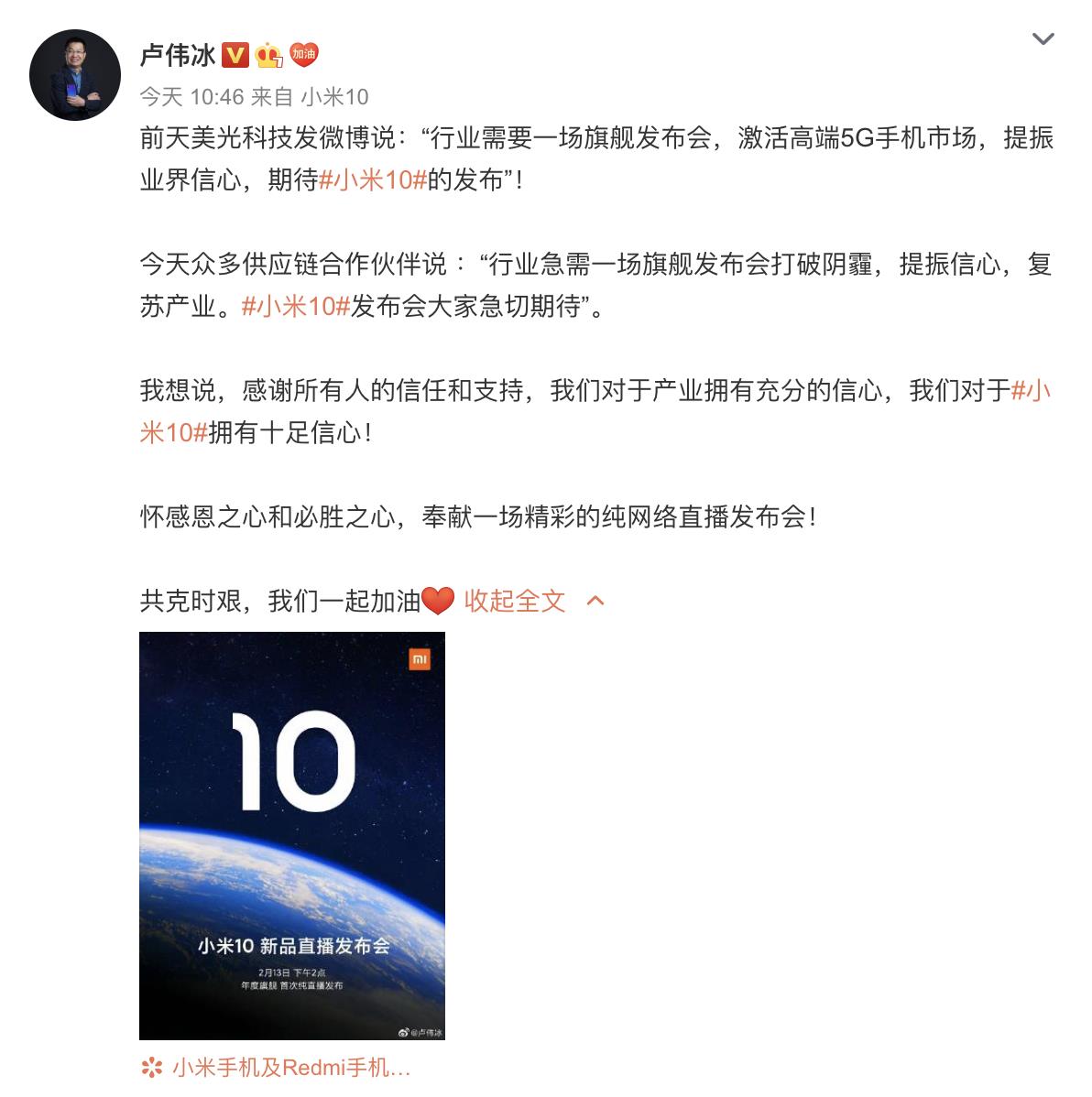 小米10确定2月13号发布!十年纪念之作,高配置加持或要涨价?