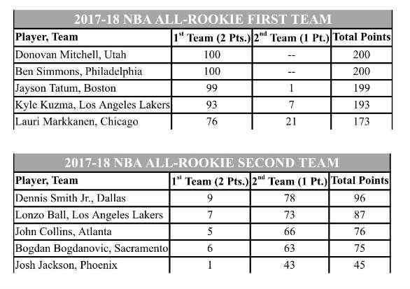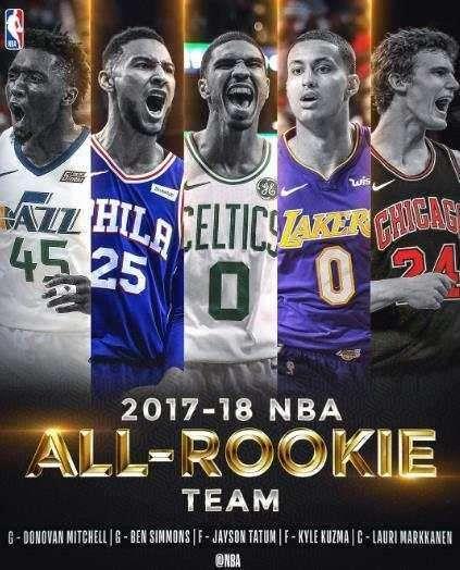 北京时间5月23日,NBA2017-18赛季最佳新秀阵容出炉。