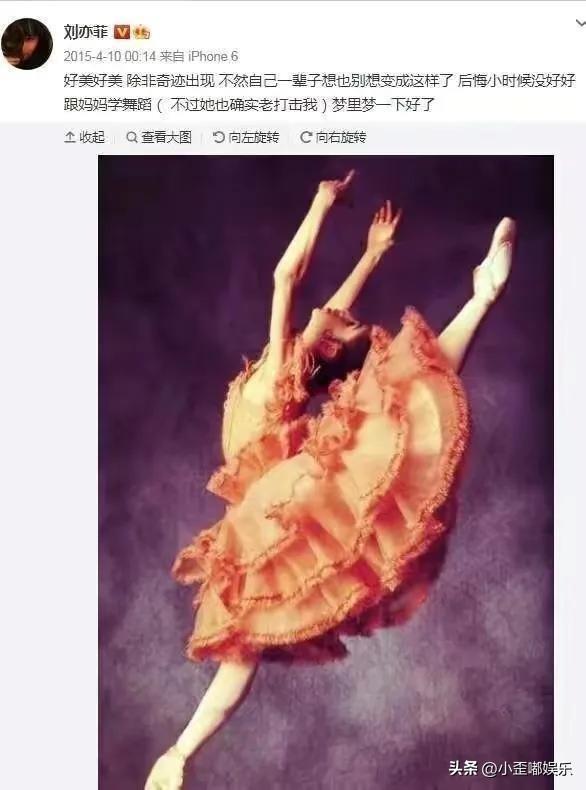刘亦菲的母亲曾经是一名优秀的舞蹈演员,难怪气质这么好,刘亦菲曾经晒出过母亲跳舞时的照片,真的是只能用“惊艳”来形容了。