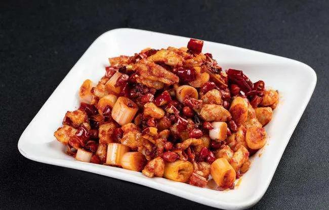 鲁菜、川菜、贵州菜中都有收录,本来叫油爆鸡丁,因它为清代山东巡抚丁宝桢首创,丁又曾被封为“太子少保”(又称“宫保”),故人们便将此菜冠以丁的封号,改称“宫保鸡丁”。后丁宝桢任四川总督,将此菜带入四川成都,经四川厨师的加工改造,其做法更加讲究,品质更为精良。后被四川的官员作为贡菜献给皇帝,发展成为御用的名菜。川菜宫保鸡丁用的是鸡脯肉,使用油酥花生米和干辣椒节,味道必须是辣型荔枝味。辣椒节炸香,突出糊辣味。