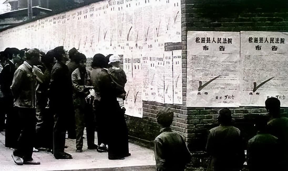 1983年,湖北松滋“从重从快打击犯罪”期间,法院的死刑布告贴满墙头。