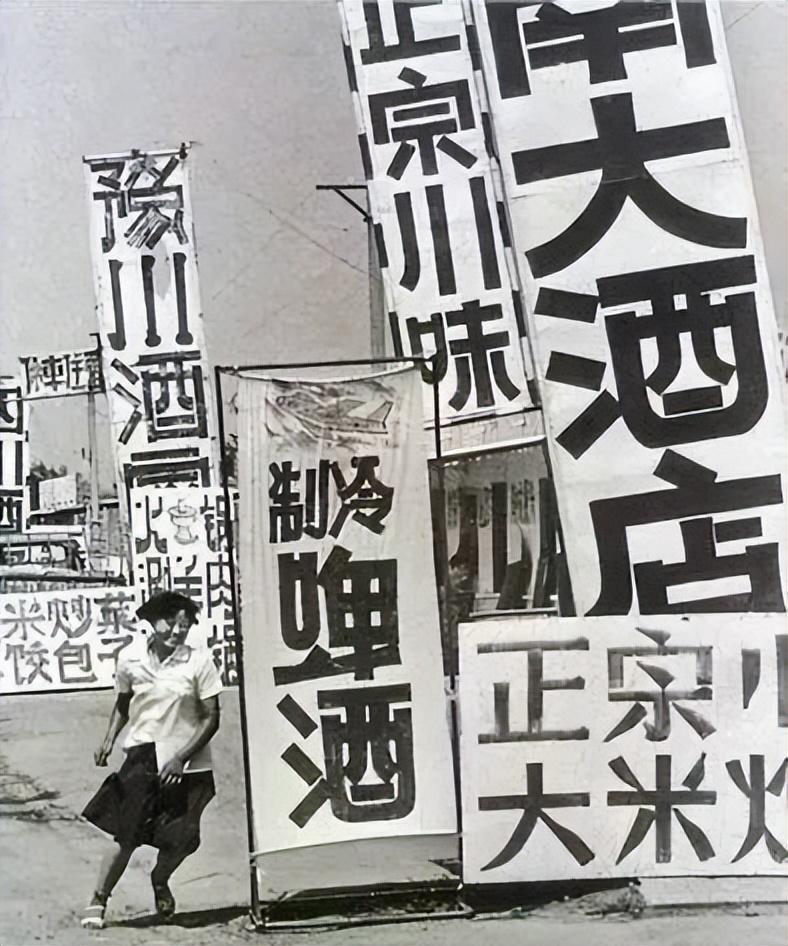 1988年,河南-北京-郑州的国道旁,繁多的饭店招牌。