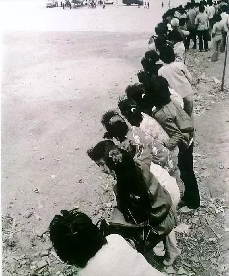 1989年,陕西临潼,一个企图插队买彩票的农妇被推了出来。