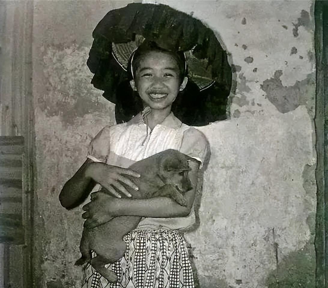 1981年,广东广州郊区农家少女,抱着小狗拍下新潮留影。