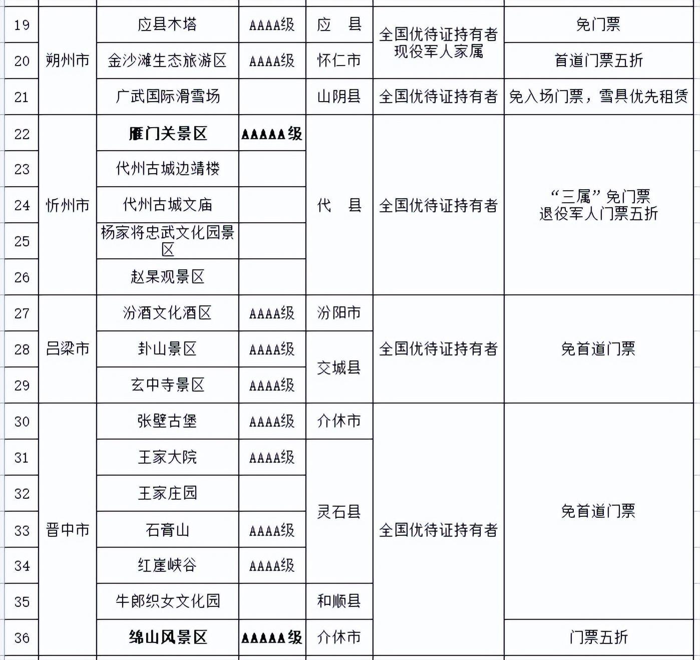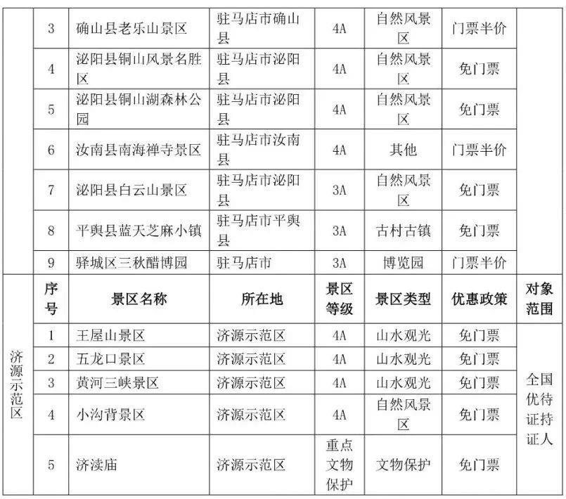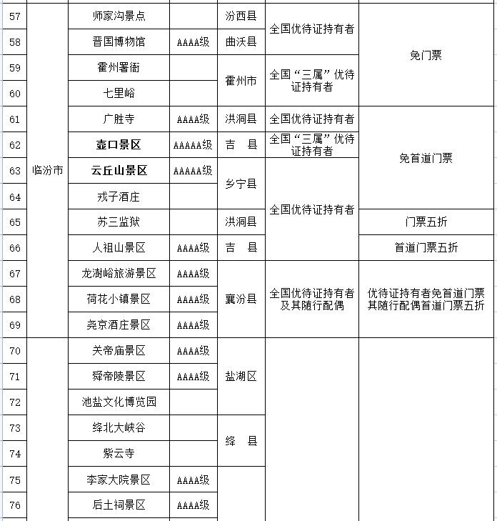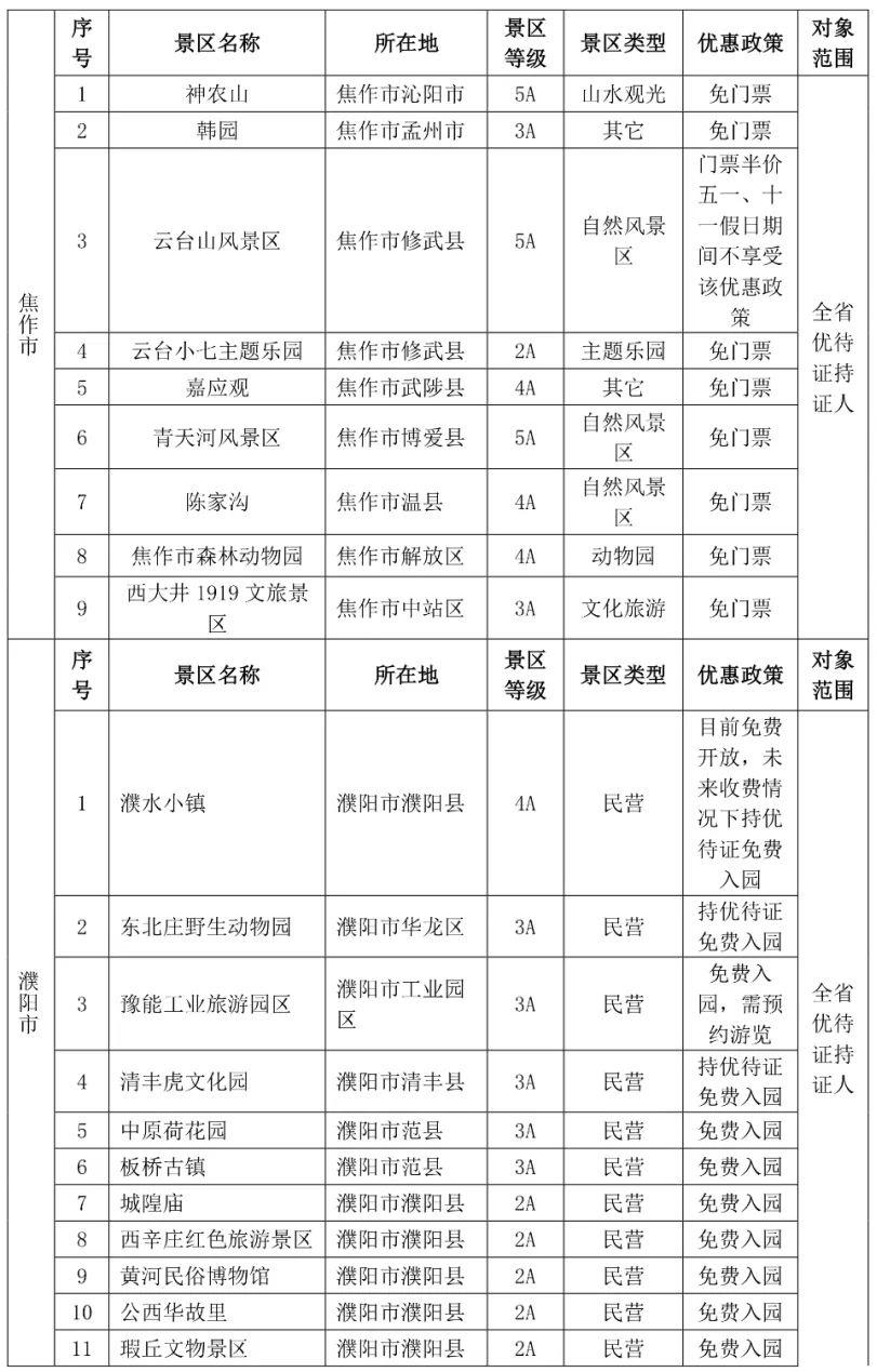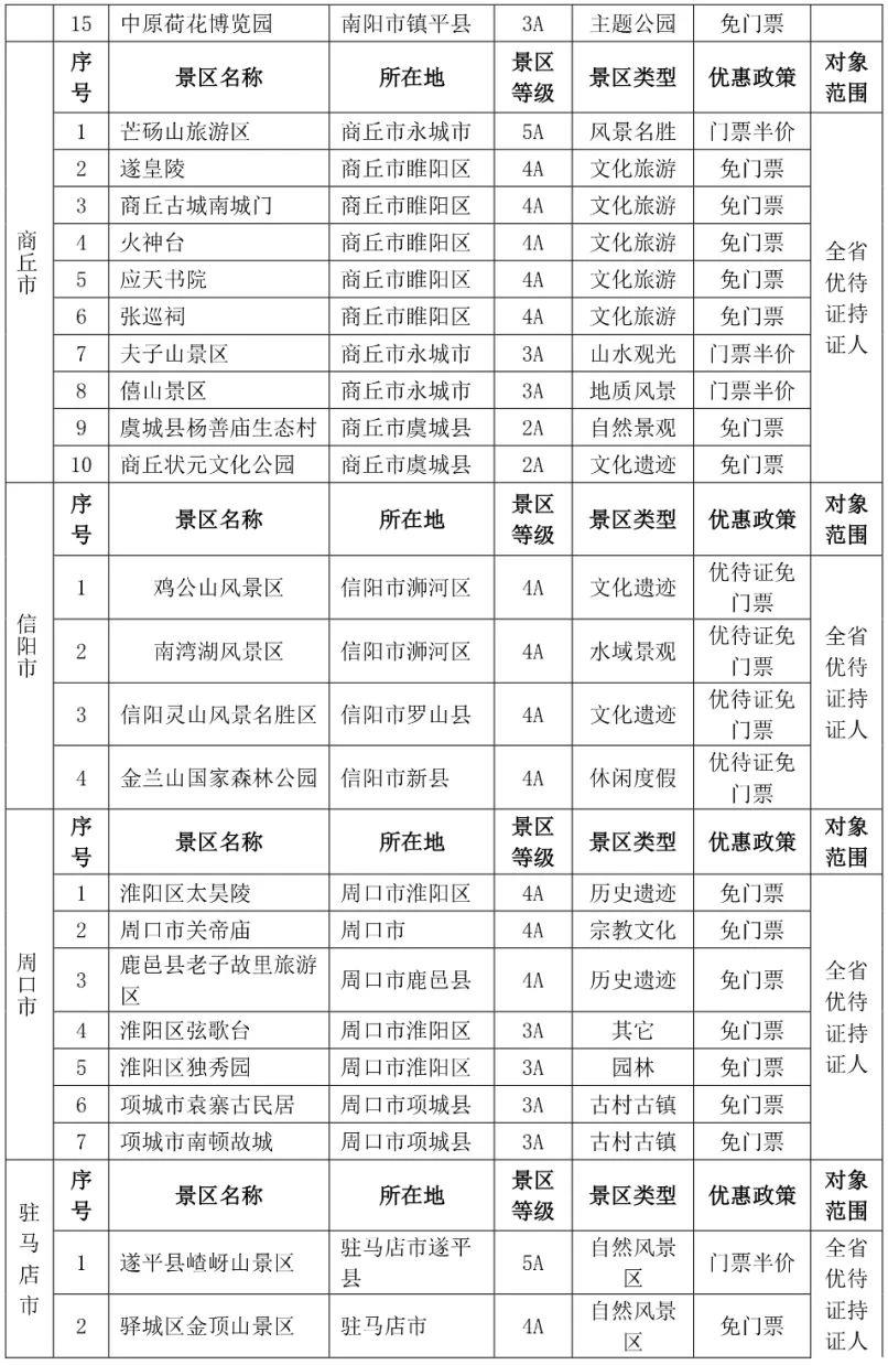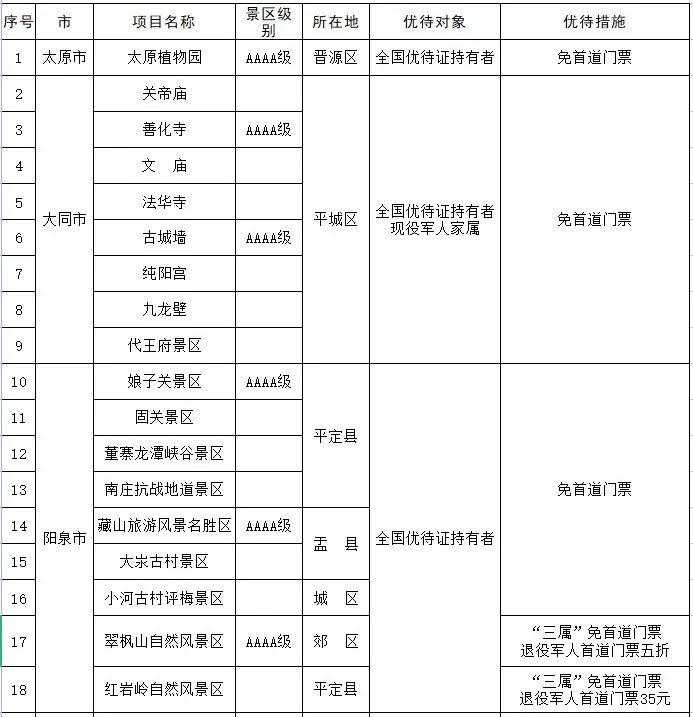 都各自公布了景区优待名录