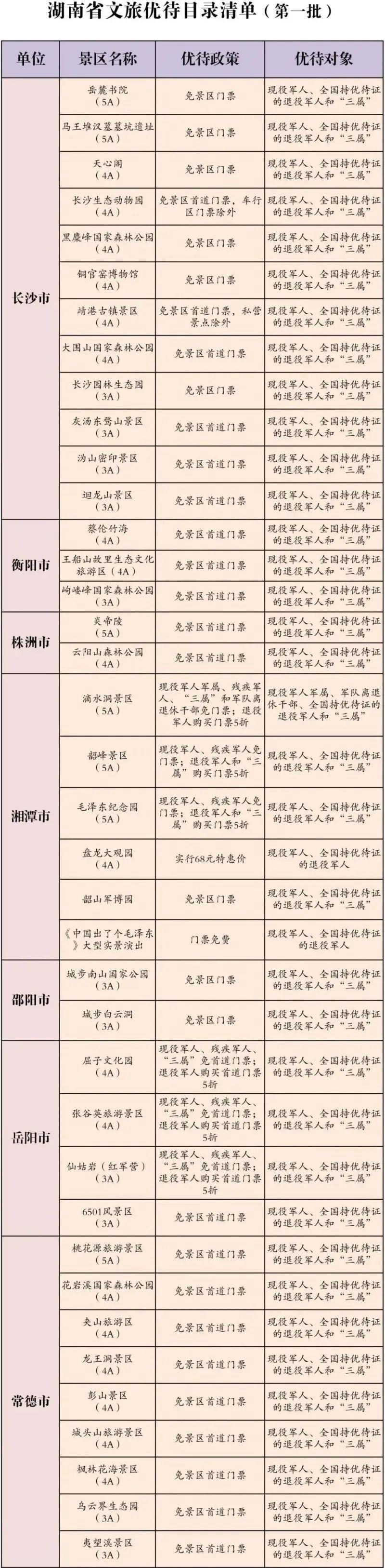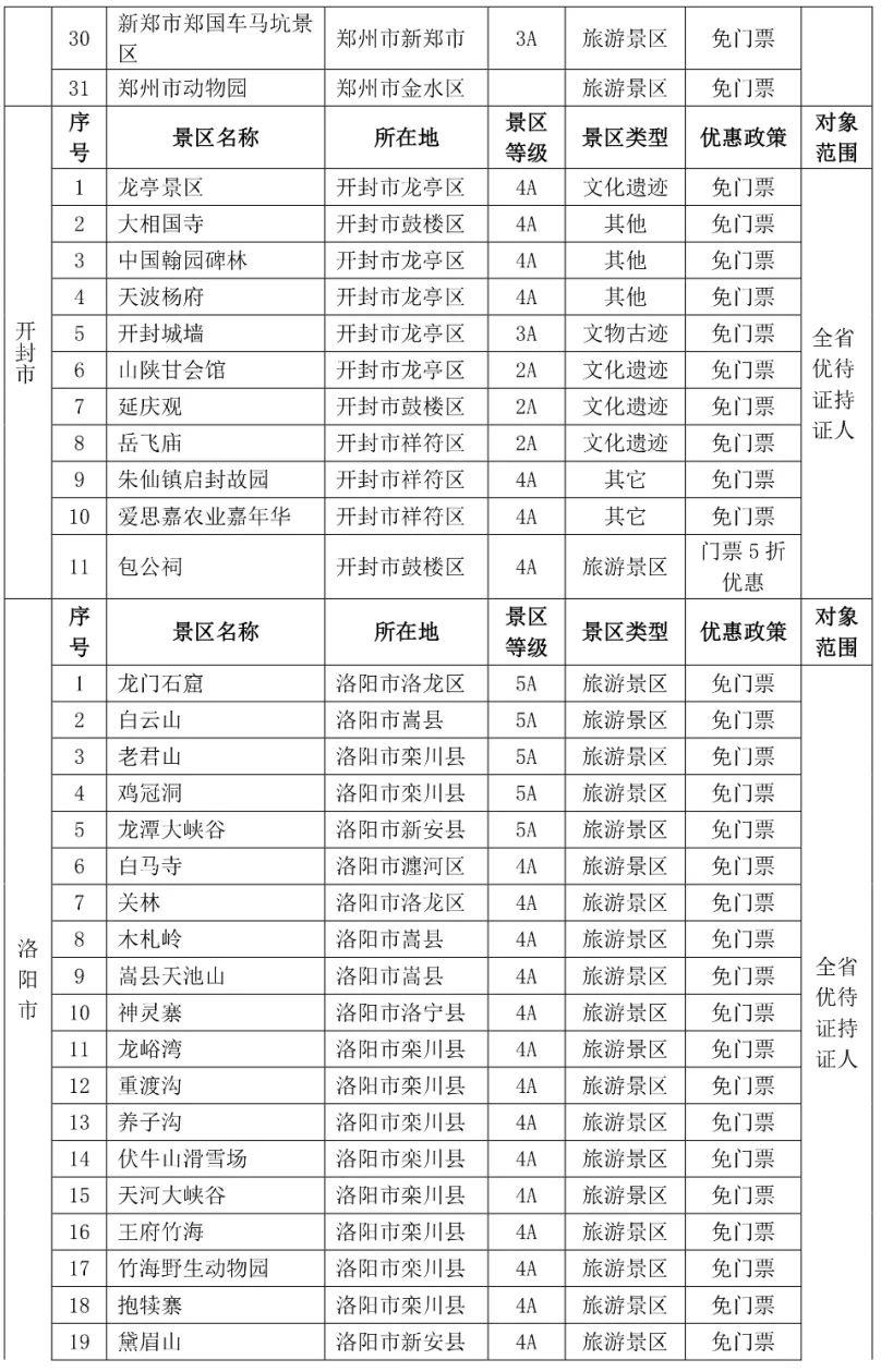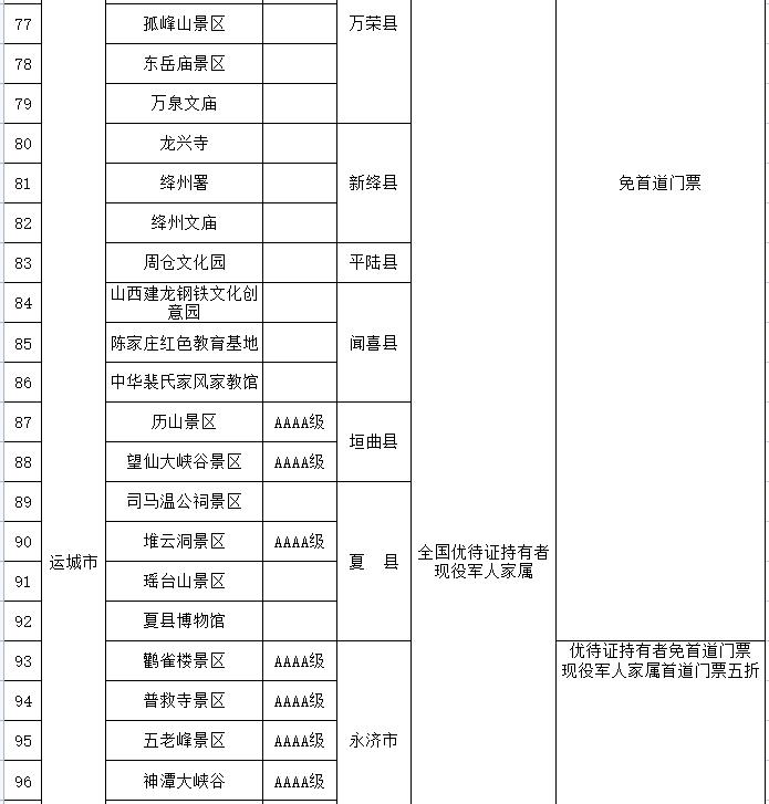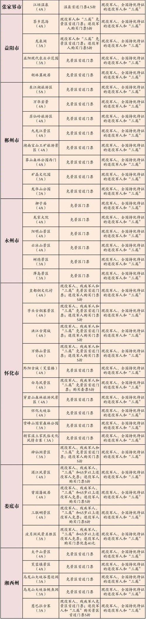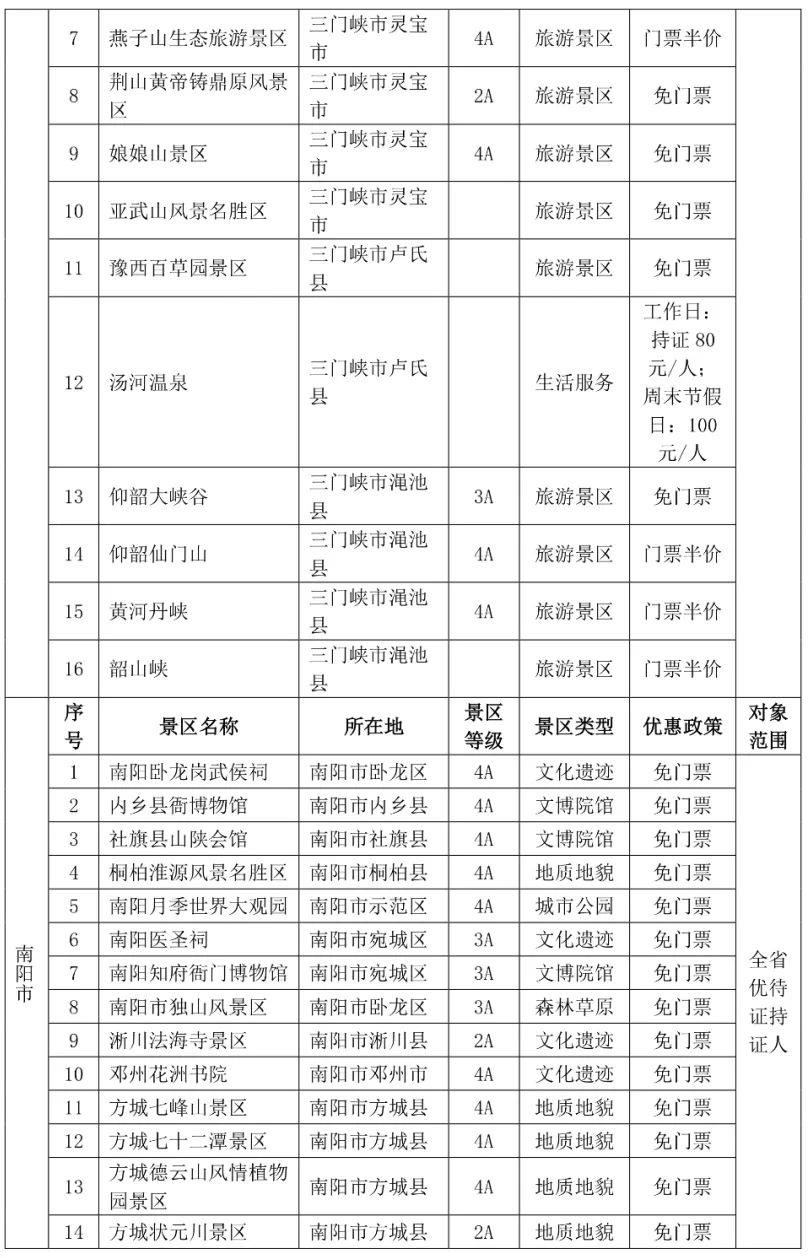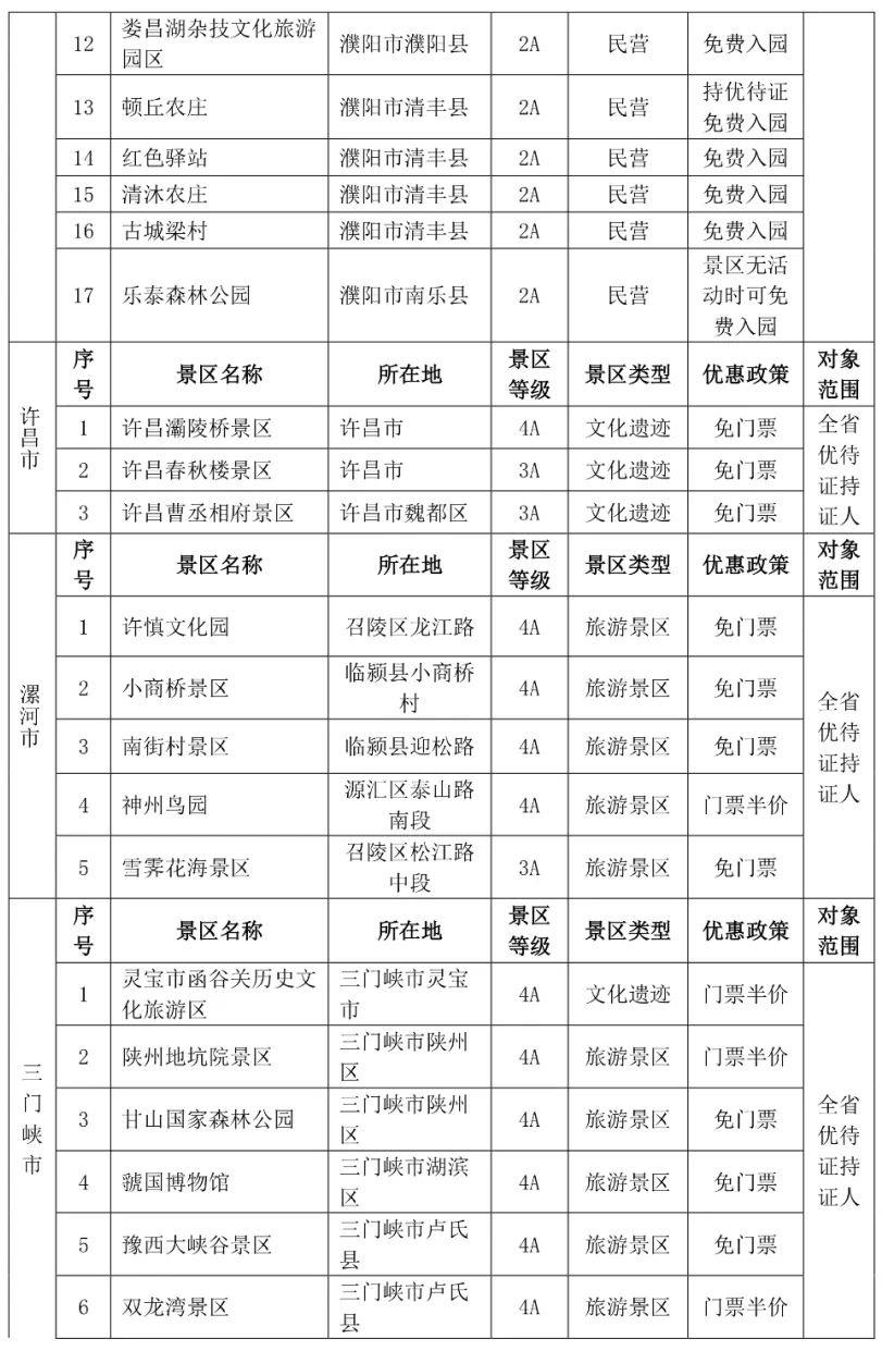都各自公布了景区优待名录