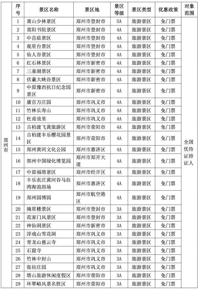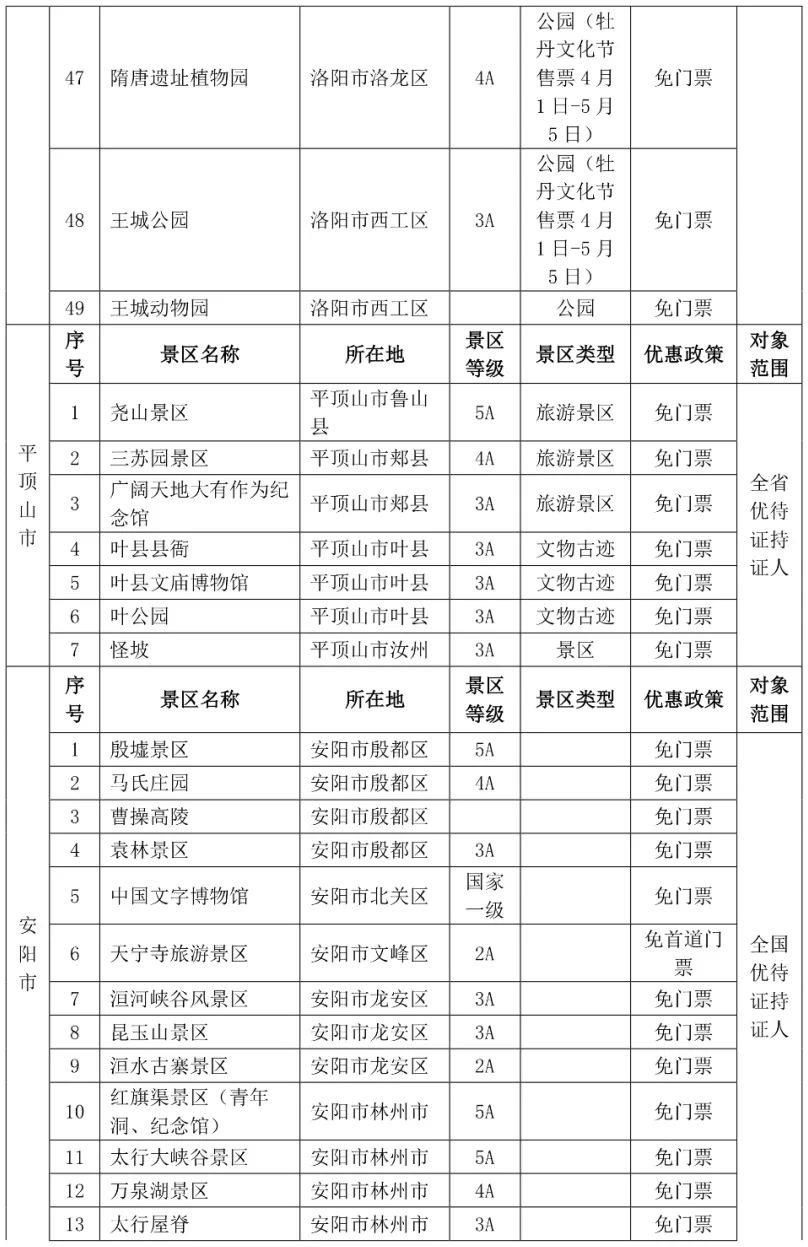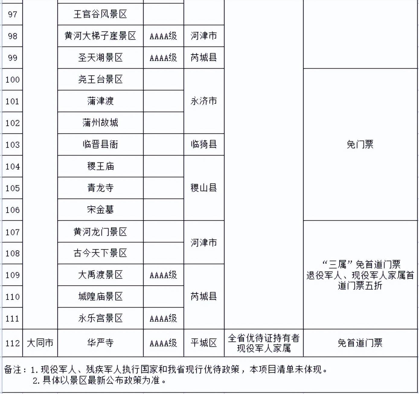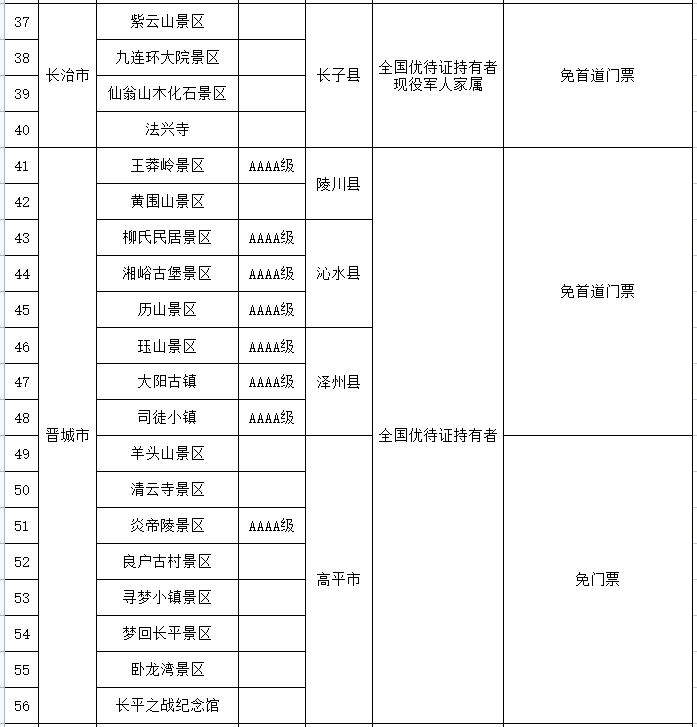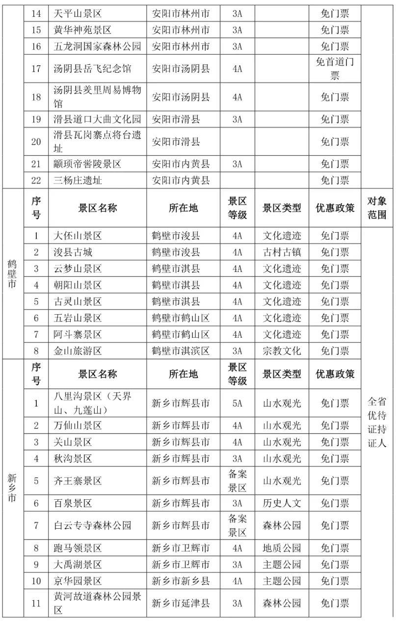 都各自公布了景区优待名录