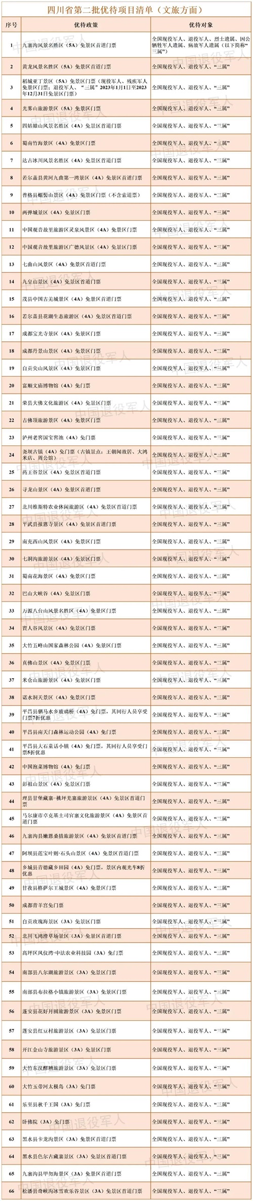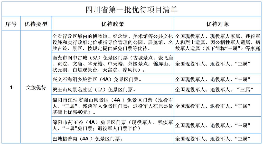 四川省已陆续公布两批文旅优待项目