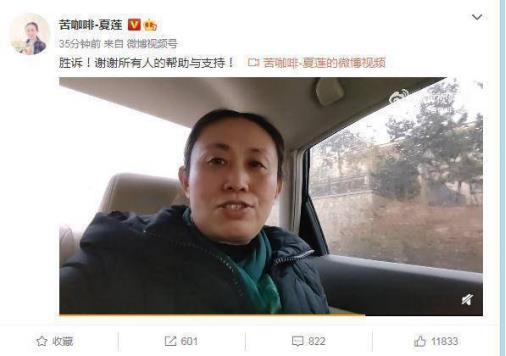 江歌妈妈@苦咖啡-夏莲 也在微博写道:胜诉!谢谢所有人的帮助与支持!
