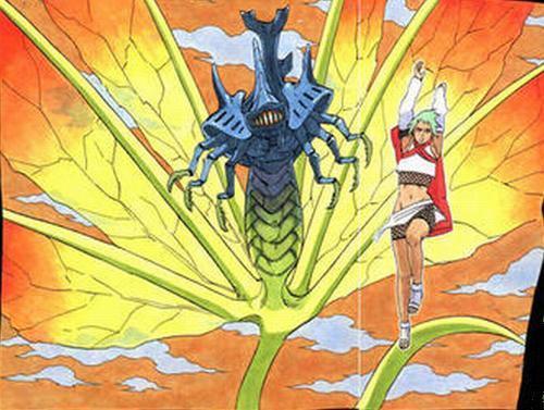 然而,也正如六尾犀犬有“犀犬”之名无“犀犬”之实一样,七尾重明除了名字与重明鸟相同外,其飞天巨虫式的设定简直让人有外星生物的即视感。七尾重明外形类似于尾部长着三对蜻蜓翅膀的独角仙,而其舒展开的体态又有些类似《异形》中的抱脸虫或是《鬼泣》中的蛇女。同时,七尾重明属于完全变态发育,其年幼里经历过蛹这一形态,这倒让人疑惑在其未破蛹成怪时是不是很容易被控制……