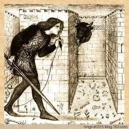 克里特岛上的米诺斯王国,有座巨大又精巧的迷宫,里面囚禁着王后生下的半人半牛的怪物,这怪牛每9年要吃7对童男童女。米诺斯国王要求当时还是臣属国的雅典负责进献童男童女,雅典人民不堪其苦。后来,一个勇敢的雅典少年忒修斯,潜入迷宫杀了怪牛,终于为民除害。