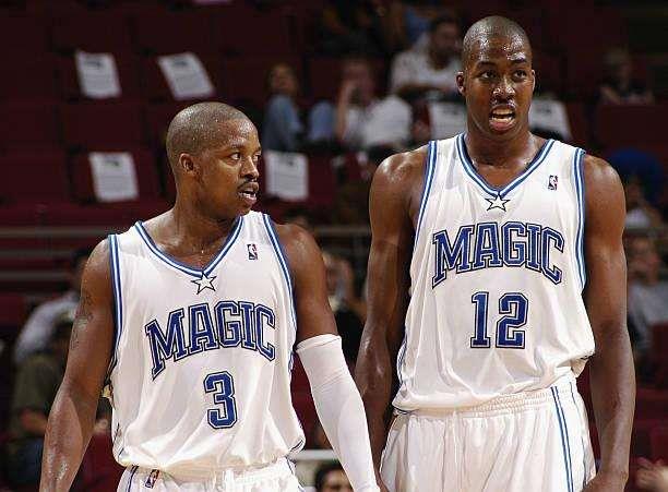 初入联盟时,霍华德没有拿到最佳新秀奖杯,当时他还不是魔术队的老大。彼时魔术队的老大是弗兰西斯,可以看到,18岁的霍华德站在后卫弗兰西斯身边,身材都不占据优势。他肩宽和臂展很优秀,但身上肌肉不大,整体还显得非常稚嫩。