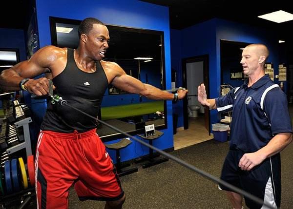 再来看一张霍华德当年的训练照,这是巅峰时期的霍华德,他已经是联盟第一中锋了。不过霍华德仍然努力训练,此时的他已经非常魁梧了。不仅拥有了一身腱子肉,肌肉分离度更是令人羡慕。看看这手臂线条,看看这肩膀肌肉,对抗能力可想而知。