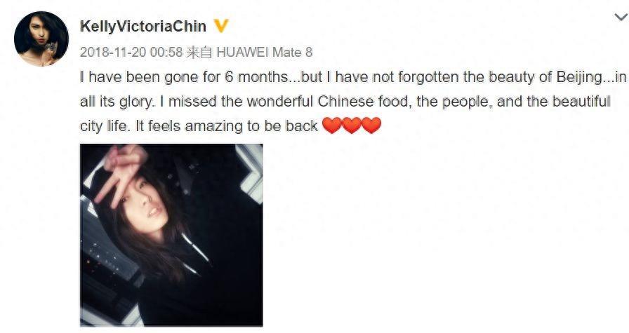 于是在2017年,有网友在微博上看到她发了这样一番话,翻译过来就是:我很享年北京的一切,怀念当初在节目中的时光,喜欢中国人、城市和美事。