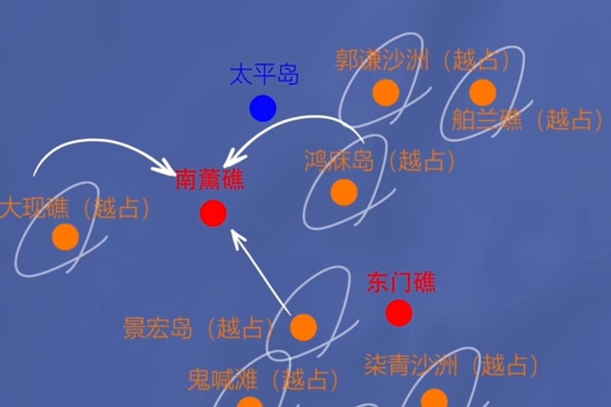 其中,南薰礁和安达礁都是拱卫太平岛的,而太平岛的东、西、南3个方向分别是鸿麻岛、大现礁、景洪岛,这3个地方都被越南占据。太平岛的位置就像一把利刃插入了越方占据岛屿地区的“心脏”位置,所以越方一直试图除掉这个“眼中钉、肉中刺”。