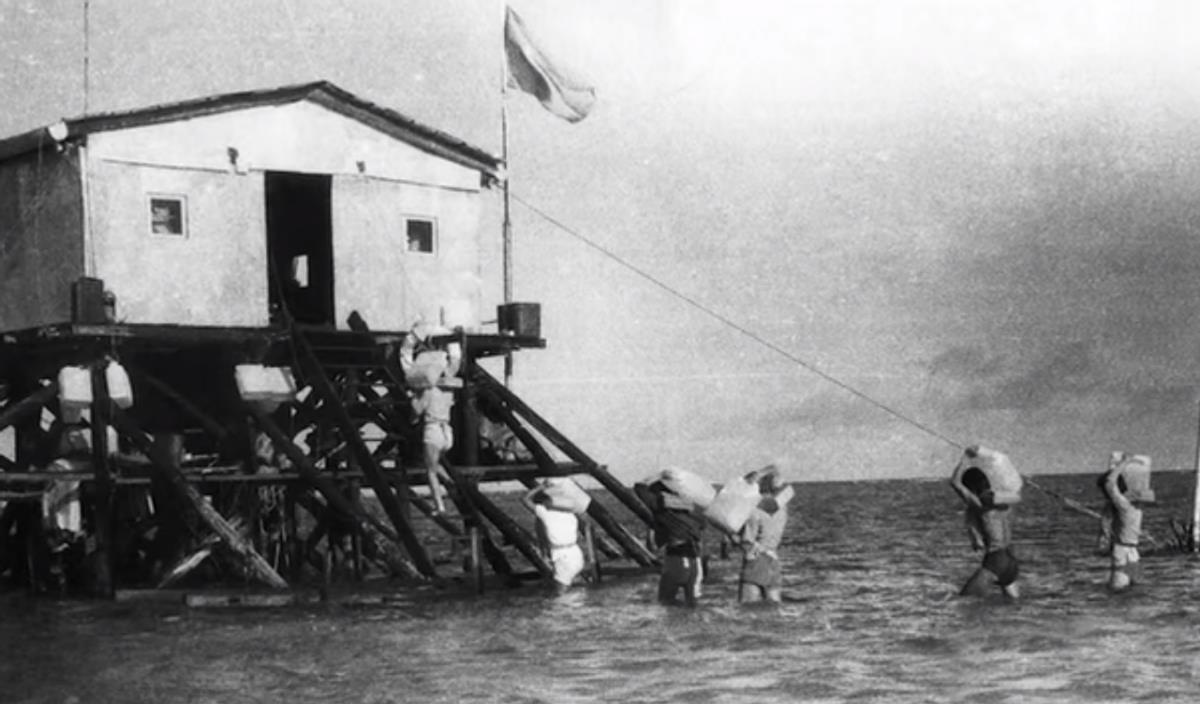 另一方面,因为礁石滩一年大部分时间都没于水下,无法用传统的建筑工艺在上面建造临时住所,战士们只能自己插下钢管做地基,并在其上面建造简易的高脚屋才能完成驻守任务。