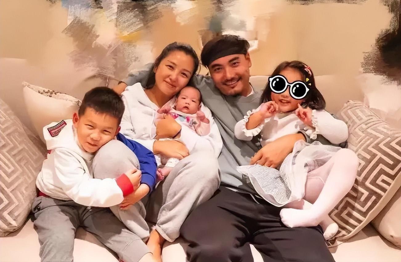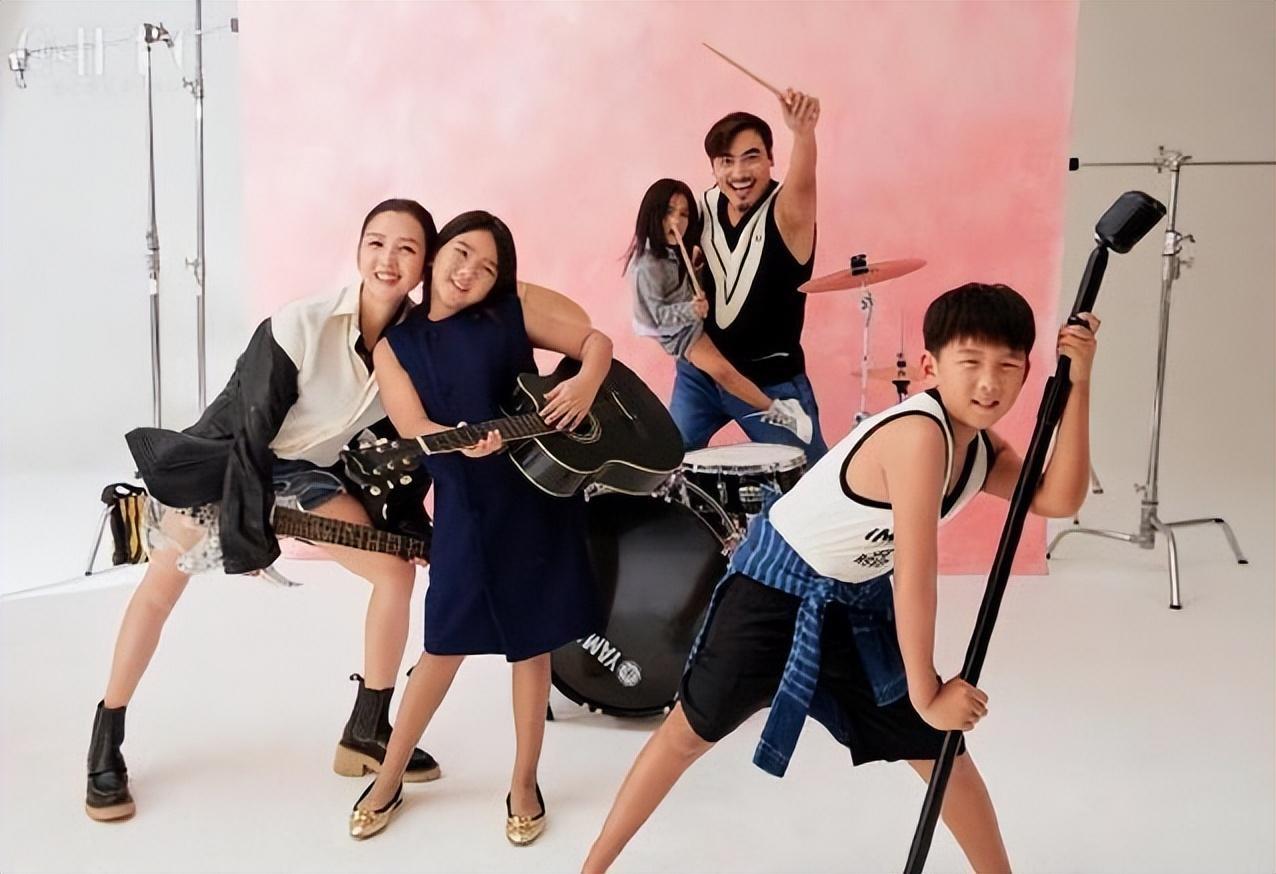 何洁一家五口拍大片,生下三胎瘦身成功,基因强大三个孩子都像她