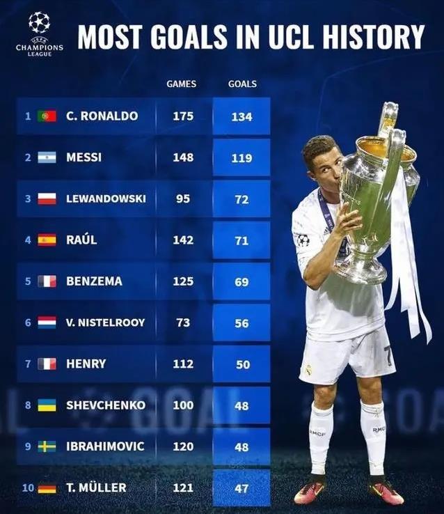 欧冠历史进球榜