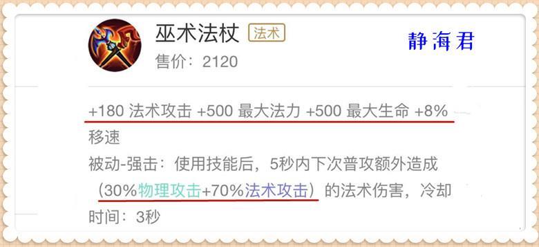如果看属性的话,巫术法杖真的不比宗师之力差多少,毕竟暴击率对于法师来说并不重要,而对法师比较重要的移速加成可是直接加在基础属性中。另外,巫术法杖强击被动的cd时间更是只有比宗师之力短1秒。这是毕竟古老的版本,接下来我们来看一下很多人不知道的版本。