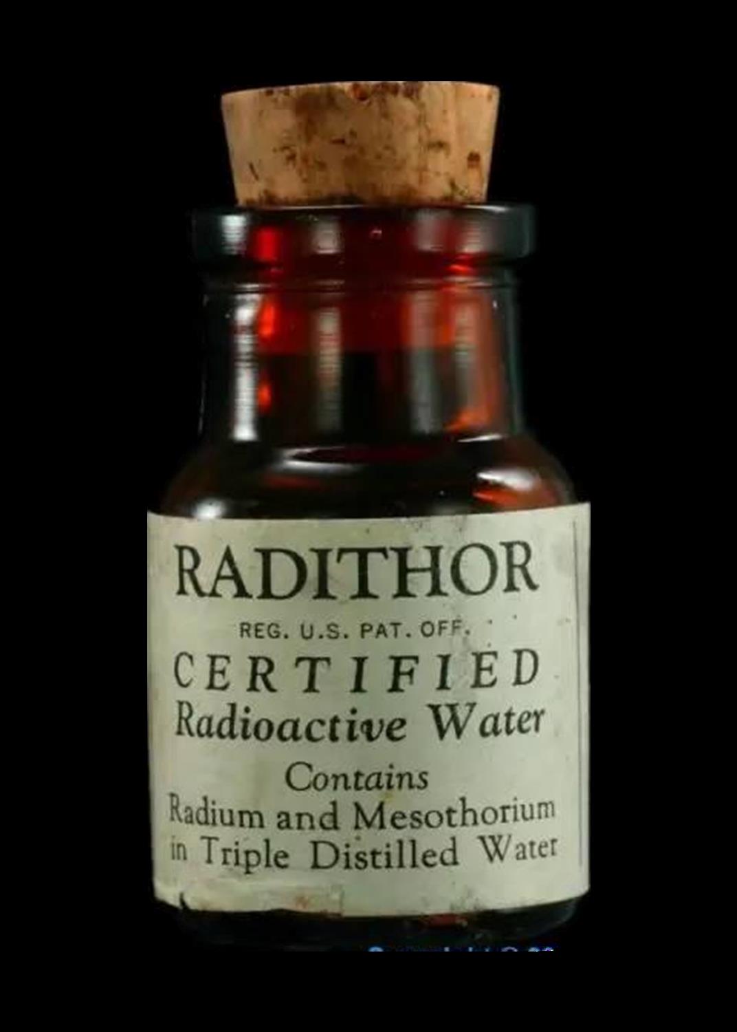而让当时更为轰动的是,镭元素衰变时所散发的辐射能够有效地杀死癌细胞,而此消息一传开,各路商家纷纷涌入了这片蓝海,当时市面上各种含镭元素的产品更是层出不穷,比如,镭香烟、镭保健水、镭巧克力、甚至是镭化妆品。