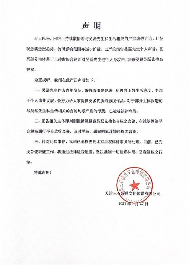 最近,随着郑爽代孕弃养事件的曝光,网络上也可是流传出越来越多的明星八卦。很多谣言看起来十分离奇,这其中包括很多明星顶流,不过大多数明星都在第一时间出面发布声明辟谣了。一月二十七日,吴磊工作室也发布了声明辟谣此前造谣吴磊私生活的谣言。