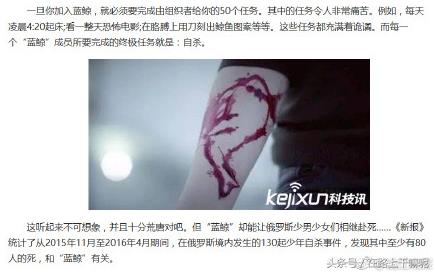「蓝鲸游戏」是一款非常危险的游戏,据新华网报道,今年1月起,俄网络监管部门已收到7000多起针对“死亡组织”的投诉,其中涉及的网站九成被关闭,但无法控制该游戏向国外蔓延。