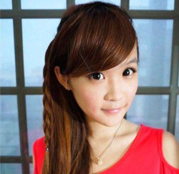 斜刘海编发马尾发型