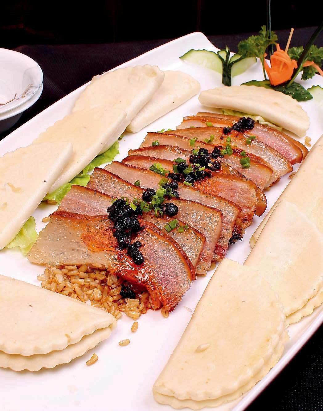 麦粒预制:东北大麦仁洗净泡透,加适量盐,不带水蒸约20分钟,净锅不放底油,下入麦仁小火炒至干香,盛入长盘底部,周边摆上一圈荷叶饼。为突出麦香味,炒麦仁时不要放任何调料。
