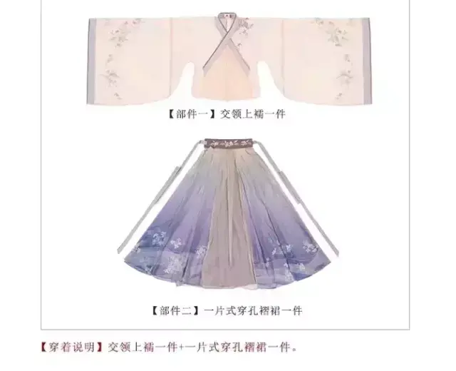 8.两片式:一条汉服裙子由前后两个裙片组合,有两个裙头。这种裙子没有出土文物,历史上并不存在。