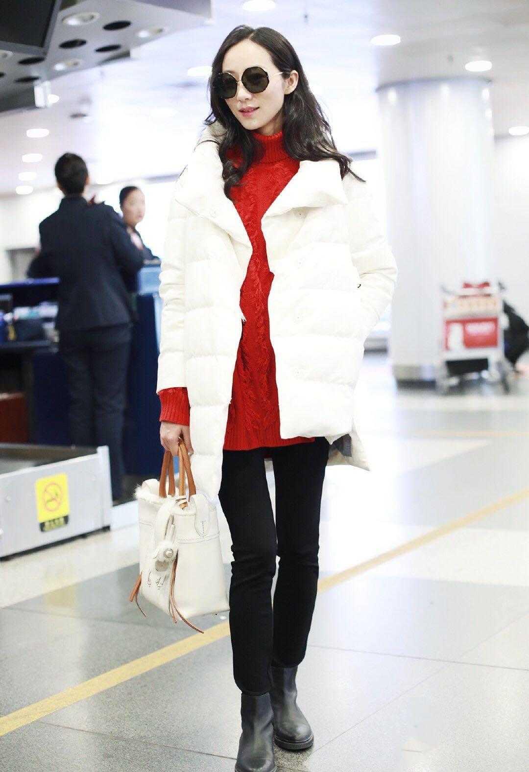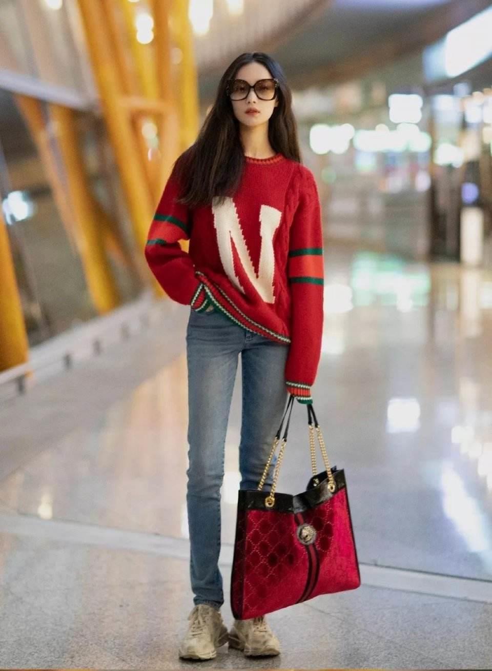 比如,杨幂所穿的这件红色毛衣就别具一格,红的、白的、黑的相聚在一起,颜色撞得恰到好处,色彩平衡得也恰如其分,不累赘但也显大方,这样的毛衣单穿,一定很给气质加分。