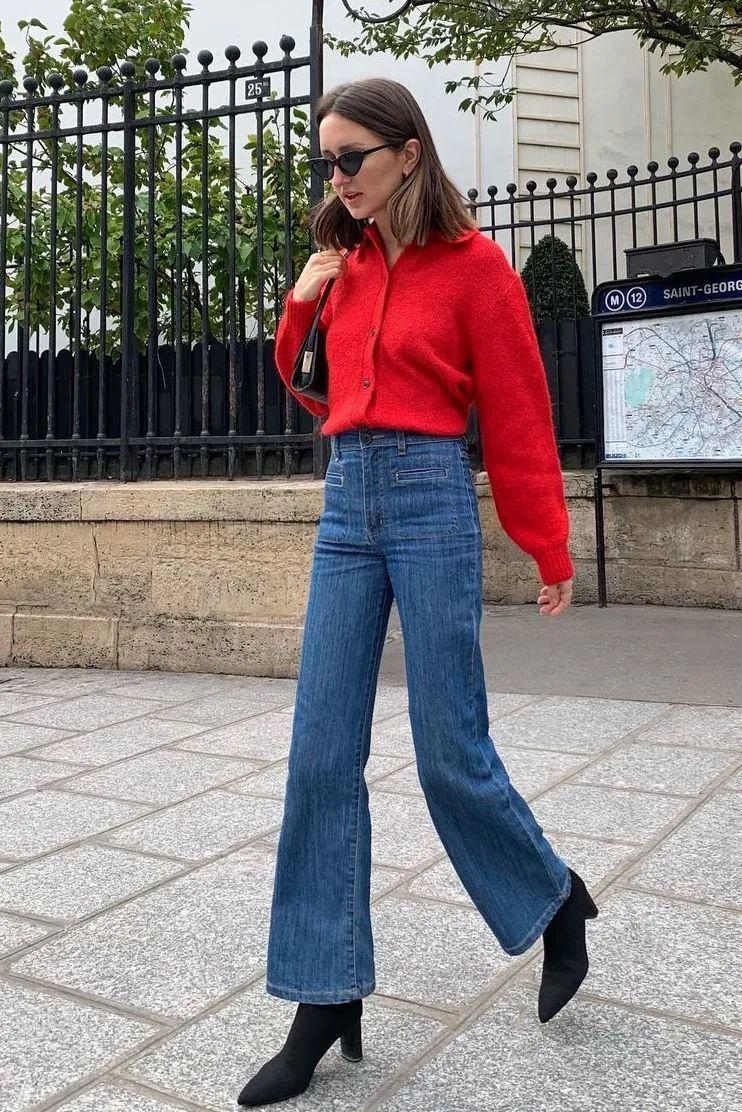 小个子穿衣需要显高一直是老大难问题,红色毛衣单穿也一样,可以试着尝试上短+下长这样搭配的优势在于直观体现了高腰线,然后拉长了腿部效果,会更满足显高需求。