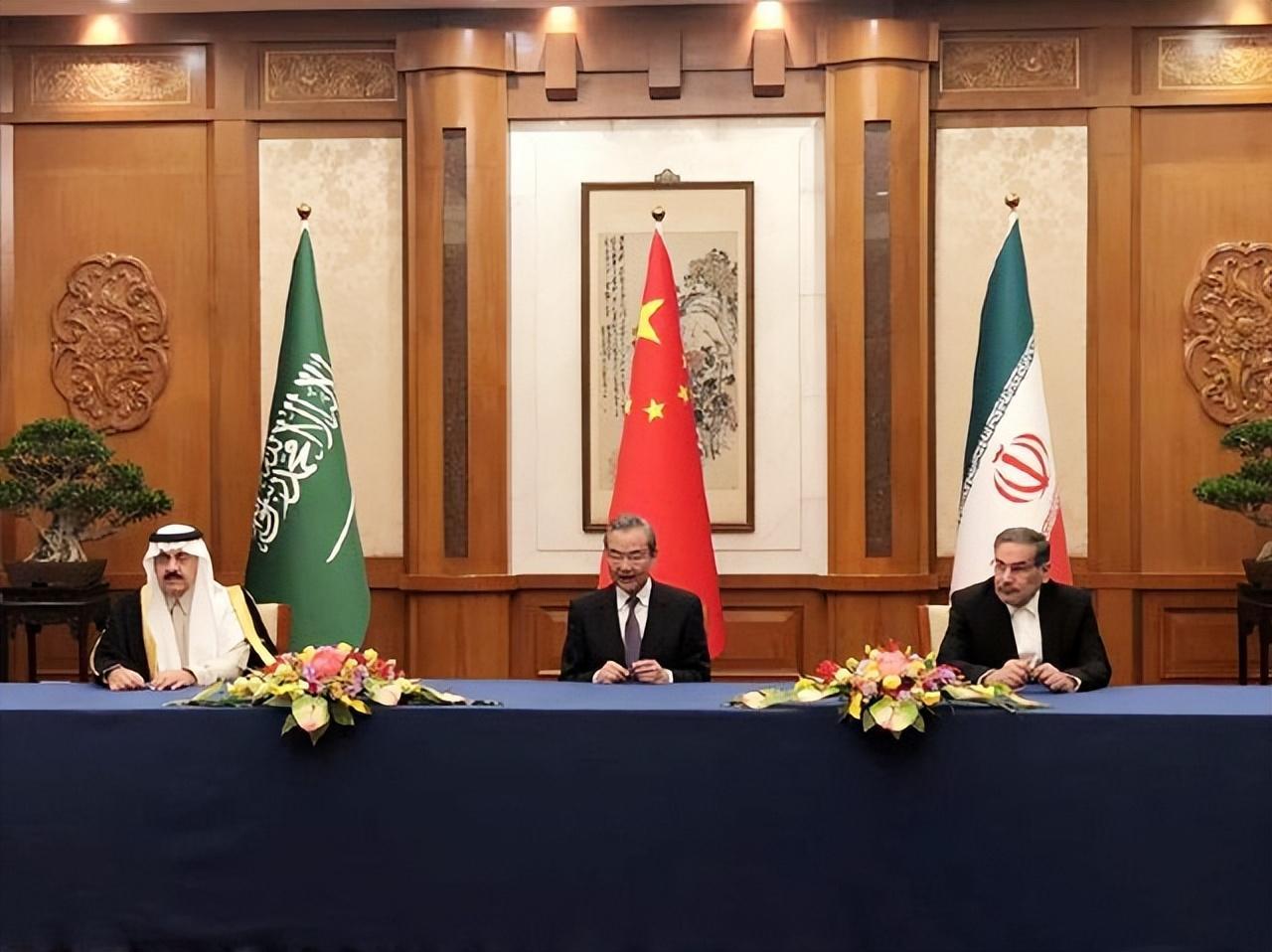 3月10日,中、沙、伊三方在北京发布联合声明,沙特与伊朗达成共识,同意在断交七年后复交。双方都已宣布后续会重开大使馆,并且重新恢复了1998年与2001年达成的关于经贸、文化、安全、青年等方面的总协议。