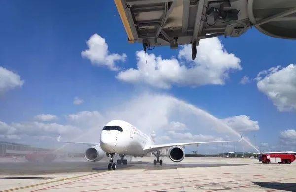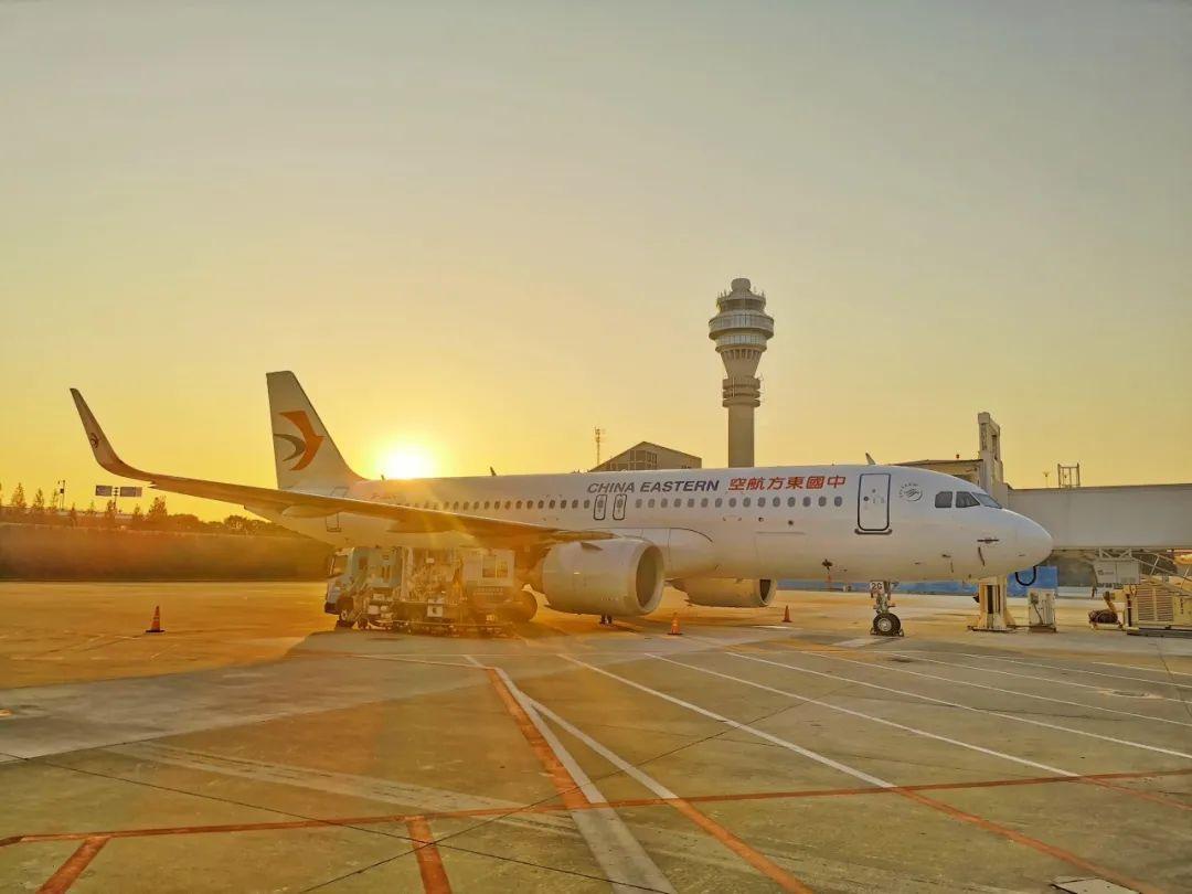 从主基地上海浦东国际机场卫星厅首架起飞的东航A350-900客机