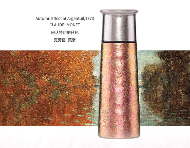 TAIC钛度目前主营饮具产品由纯钛打造,精准控温,21道顶尖工艺,天然出色,手工打磨,每个钛度杯呈现不一样的宝石肌理。发挥了钛金属轻、抗酸碱耐腐蚀、亲和人体的优势。再加上独有的Ti-Anox技术加持,拒绝喷漆,天然出色的工艺,让健康加倍。