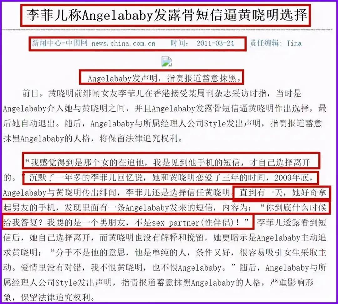 后来,在和教主见面的时候不小心看到了baby给黄晓明发的露骨短信,李菲儿这才知道自己有了个小姐妹儿,于是在争吵过后两人选择了分手!