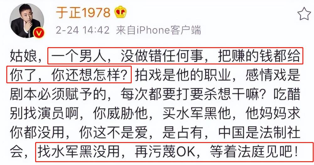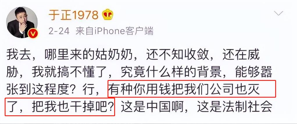 这样的做法,于正实在看不下去,而且还是自家旗下的演员遇到这种事,身为老板当然要挺身而出,护赵弈钦周全。