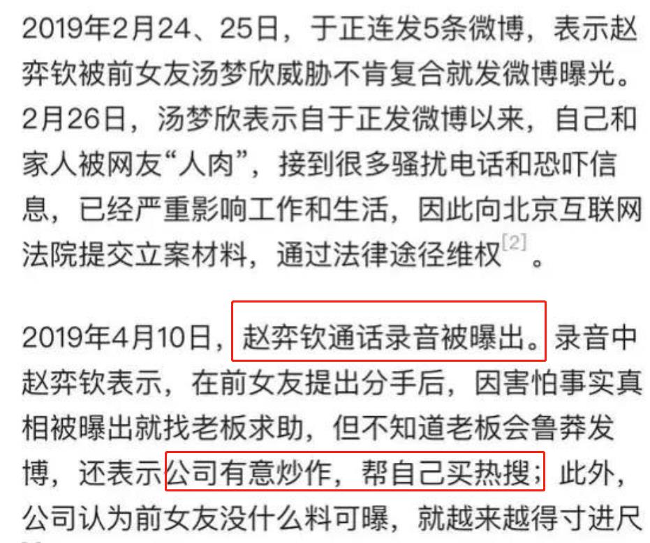 前女友威胁赵弈钦:“敢分手,就把你的肮脏事全说出来”