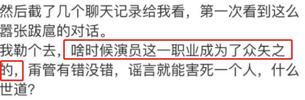 于正说:“什么时候娱乐圈的演员被架上了这样的枷锁?不管是白的黑的,都能够被谣言给抹杀掉,这是个什么世道”?