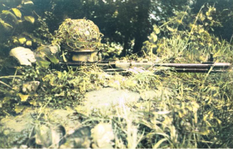 散兵坑里观察敌情的德国伞兵 他们身上的kar98k步枪毫无疑问不具备对对面敌人的压制能力