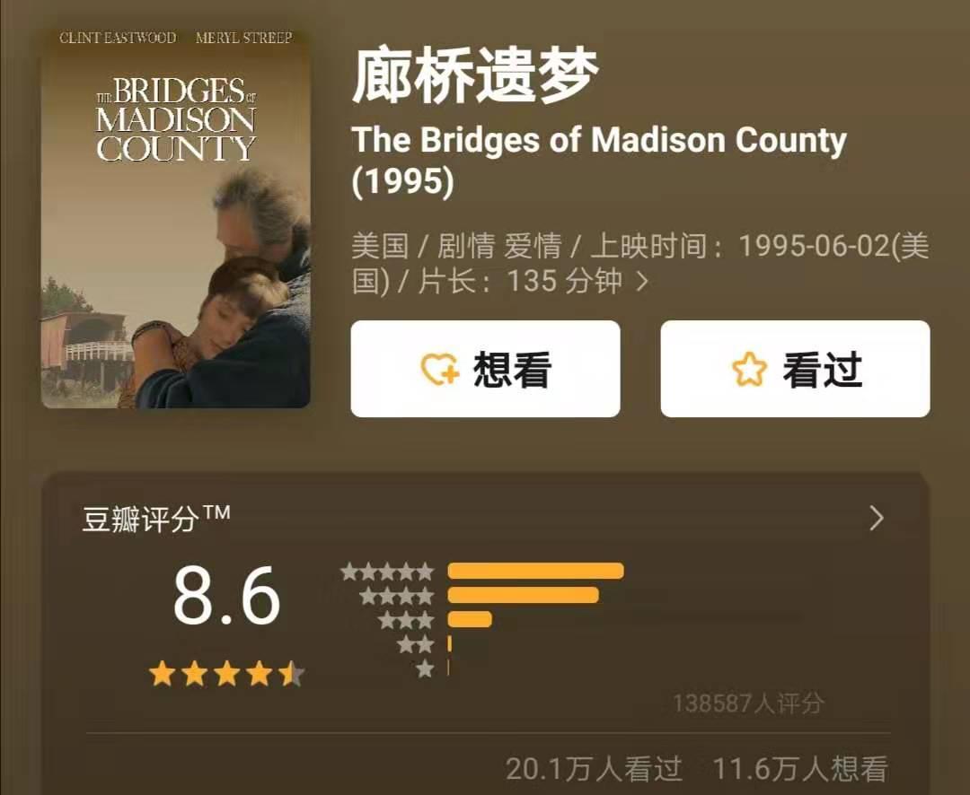 豆瓣8.6《廊桥遗梦》:浅析影片成为经典的三个要素