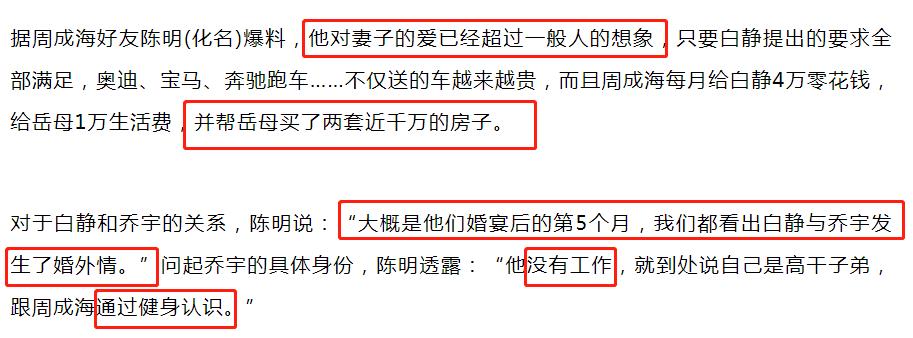 白静作为演员,对自己的身材有着极高的要求,所以经常往返健身房,周成海常常跟着,便慢慢养成了健身的爱好,他当时的教练名叫乔宇,可这个乔宇人不如名,私下是个实实在在的小人,接触周成海,便是为了有利可图。