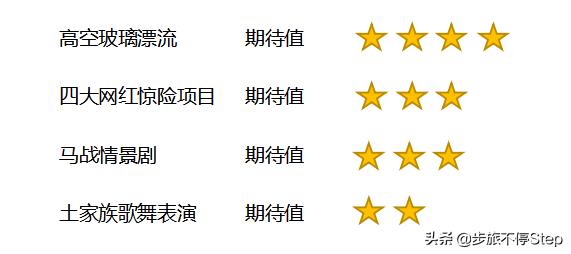 去之前小步也在网上做了一些功课,了解了锦里沟的主要游玩项目以及介绍,整理出了必须要体验的项目以及对应的期待值。