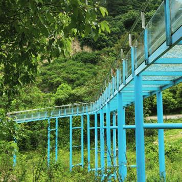 在看到锦里沟玻璃滑道的第一眼,小步心里就唱起了《大碗宽面》……哦不!是《高空漂流》:“你看这个漂流滑道它又高又长”,从高处看过去简直一眼看不到尽头!
