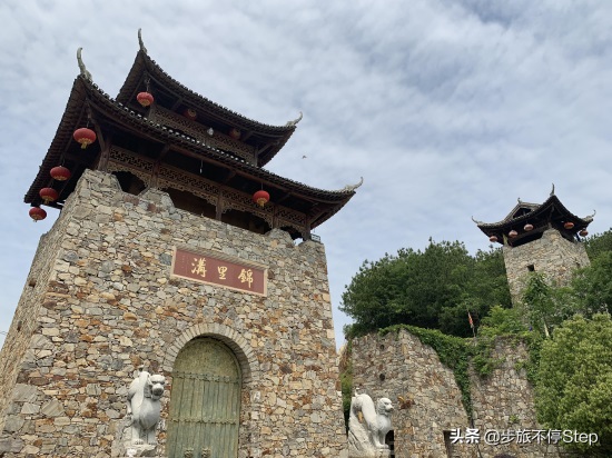 不过这种感觉没有持续多久就被气势宏伟的景区大门冲淡了一点。一改来时路上看到的破旧,景区的大门是赋有特色的石楼,前面放着两尊守门的白虎雕像。