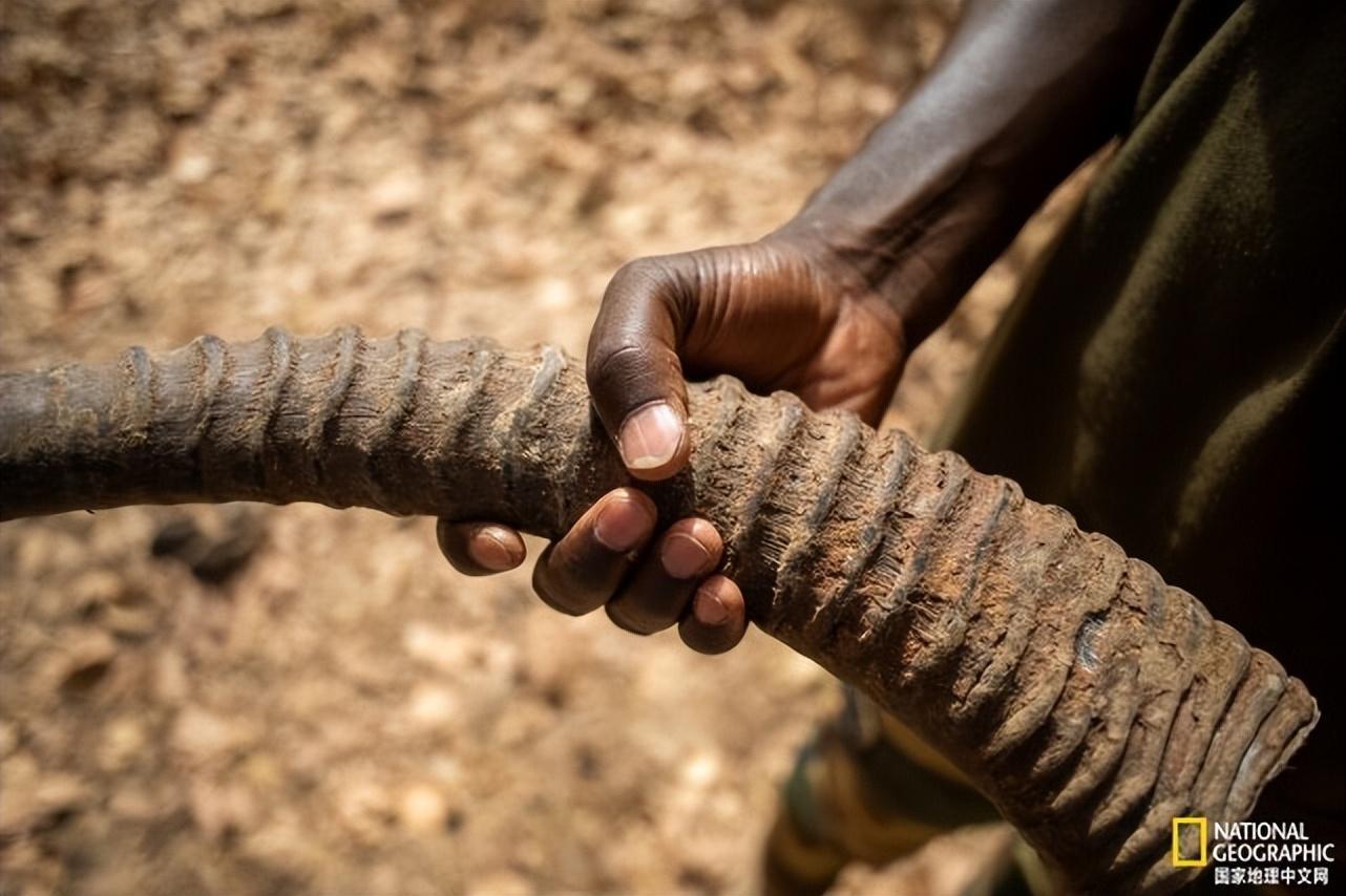 野生猫科动物保护组织潘瑟拉的塞内加尔现场技术人员Mouhamadou Ndiaye向我们展示了马羚的角,它在公园里被狮子猎杀。马羚能长到270公斤以上,是狮子最爱的猎物,也是偷猎者的目标。摄影:JOHN WENDLE