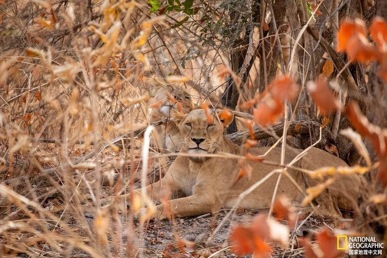到目前为止,人们一直认为极度濒危的西非狮不会形成狮群。但在塞内加尔的尼奥科洛-科巴国家公园(Niokolo-Koba National Park),戴着无线电项圈的母狮弗洛伦斯正躺在狮群里的另一只母狮身边。摄影:JOHN WENDLE