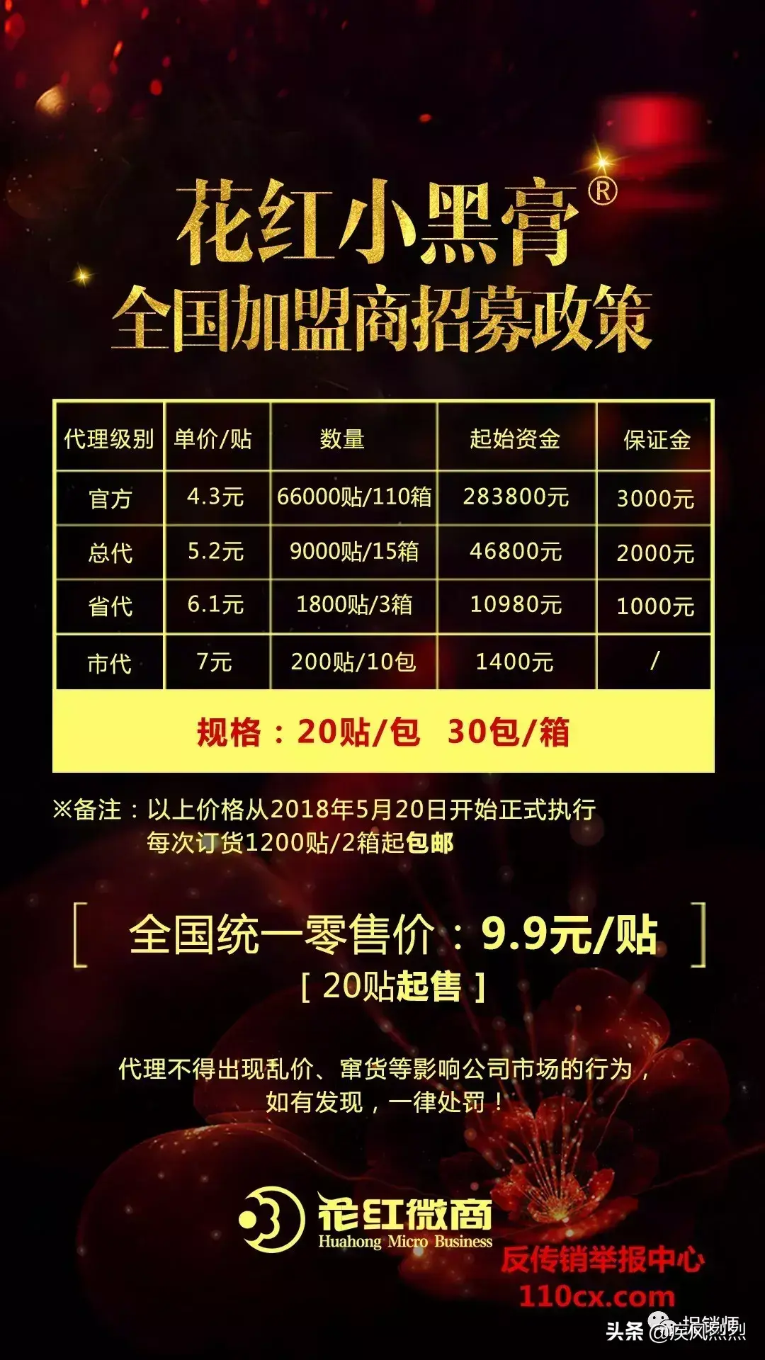 对比这段话,我们来看看花红小黑膏全国加盟商招募政策。