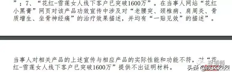 据悉,花红雪莲贴由应采儿代言。笔者不知在代言这款两度被处罚的产品前,应采儿是否按照相关规定使用过。