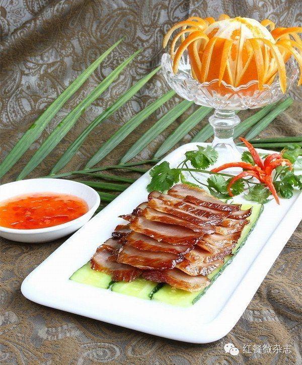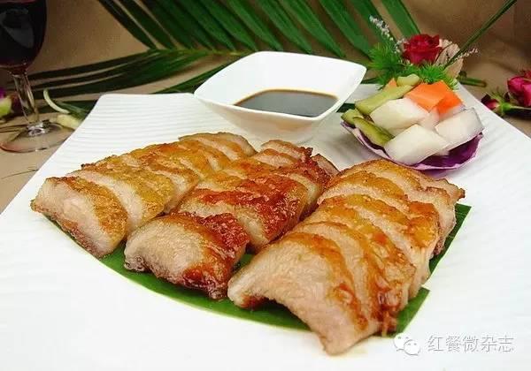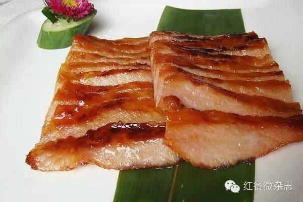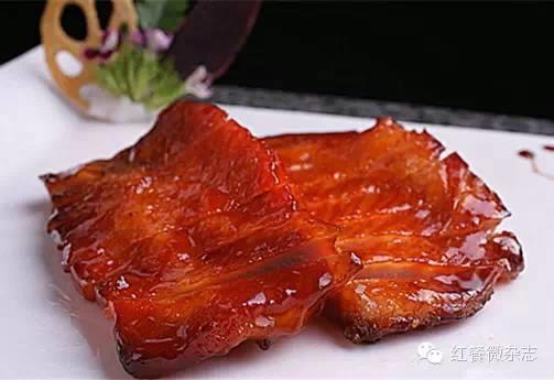 1、将五花肉切方块,加所有调料腌渍40分钟,风干2—3小时,刷上“乳猪酱”50克(甜香味,橙红色,上色),用微波炉烤制40分钟(前期调到“烧烤+微波”功能烤制20分钟,再用“烧烤”功能烤20分钟),中途刷油2次即可(最好用熟鸡油和花生油混合使用,色亮味香)。