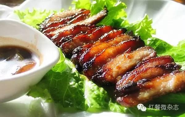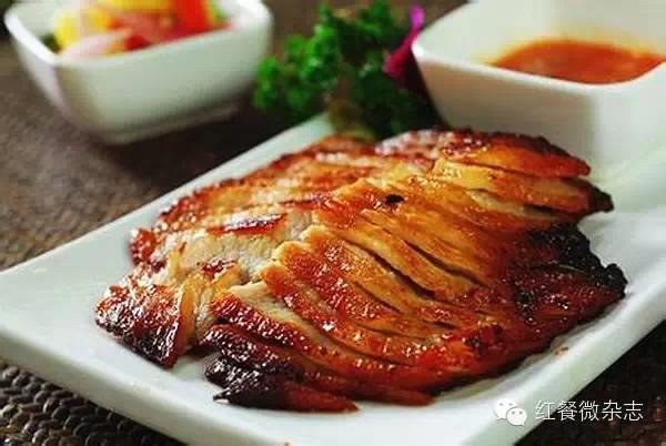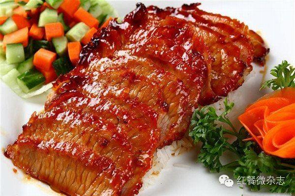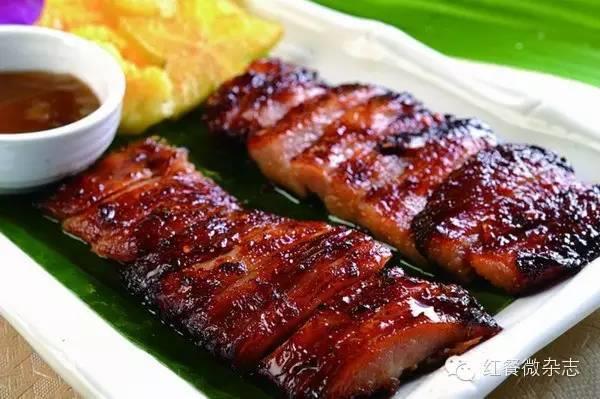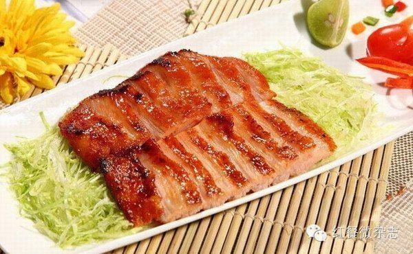 将猪颈肉加入所有调料腌渍2小时,放入烤箱中上层,以200℃烤制30分钟左右,中途取出一次,两面刷上腌汁及麦芽糖,烤至棕红色即成(若没有烤箱,也可以用平底不粘锅慢火煎制)。